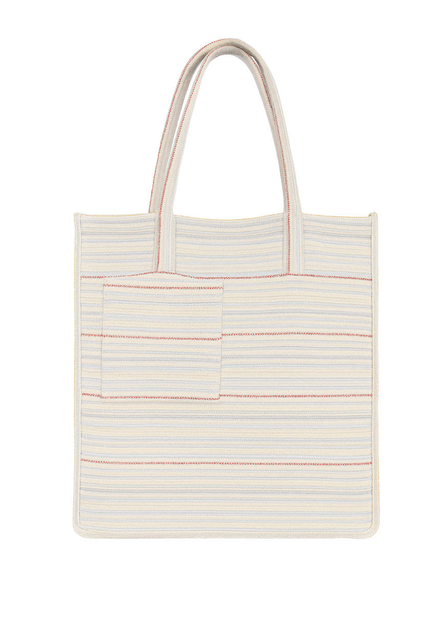 LidLoom Striped Cotton Tote Bag |Beige-Red
